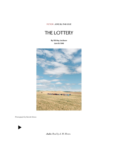 Fall 2018 Swarthmore College advised by Professor Peter. Web The Lottery by Shirley Jackson 1pdf. Web The Lottery by Shirley Jackson Lesson Plan Worksheets and Key These materials do not require any prep and can be used as an emergency lesson for a sub.